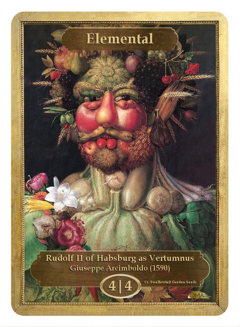 4/4 Elemental Token featuring the artwork "Rudolf II of Habsburg as Vertumnus" by Giuseppe Arcimboldo, painted in 1590.