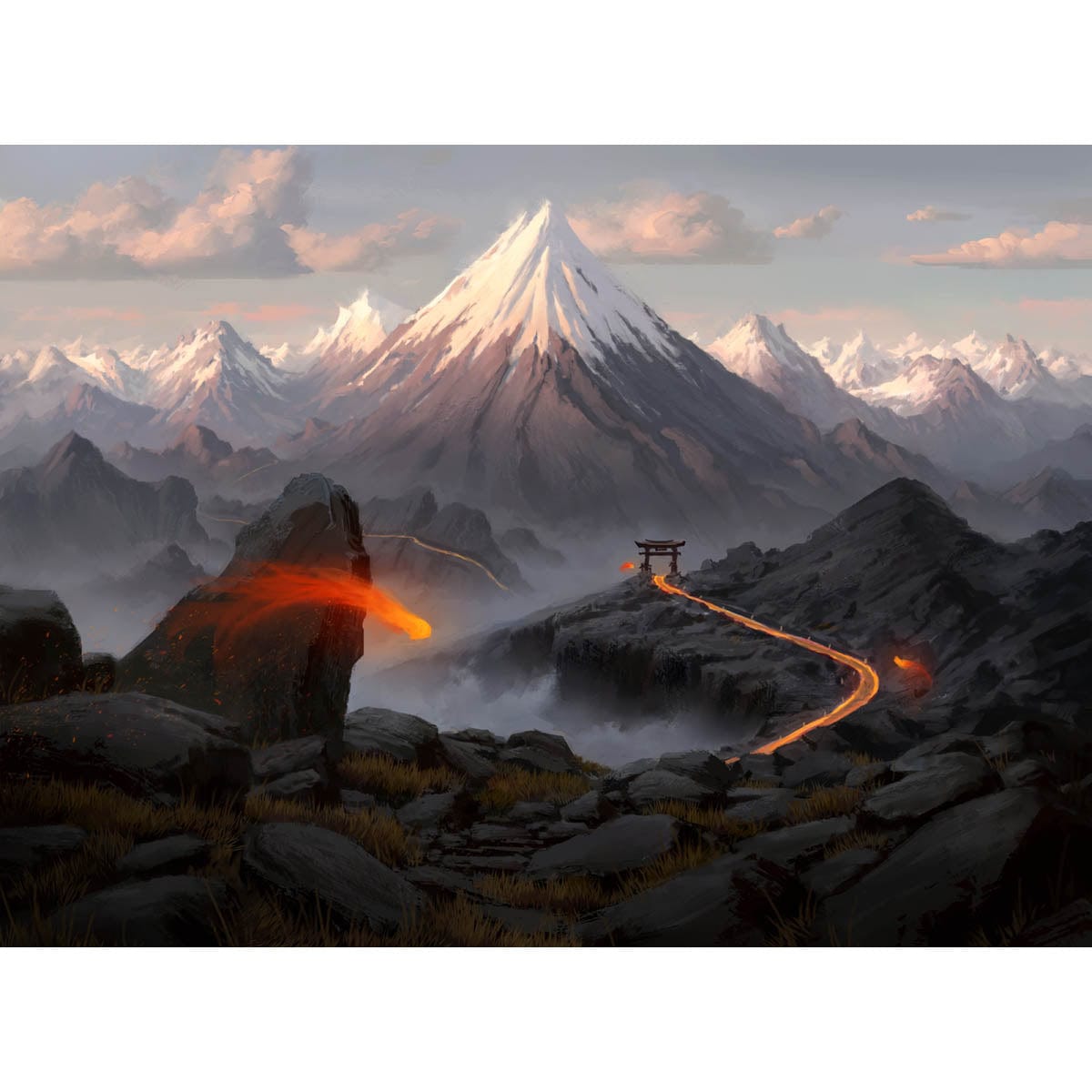 Giclee Print of Mountain illustrated by Piotr Dura for the Kamigawa: Neon Dynasty expansion of Magic: the Gathering.