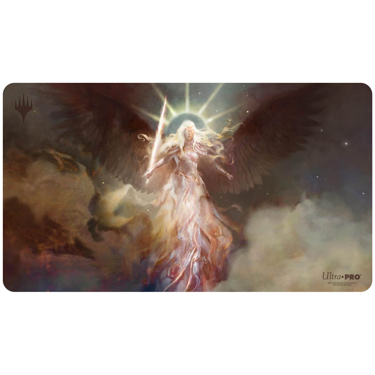 Offered exclusively through the OMA Store, we are proud to present the Official Serra's Emissary Playmat, illustrated by Nils Hamm for the Modern Horizons 2 expansion of Magic: the Gathering.